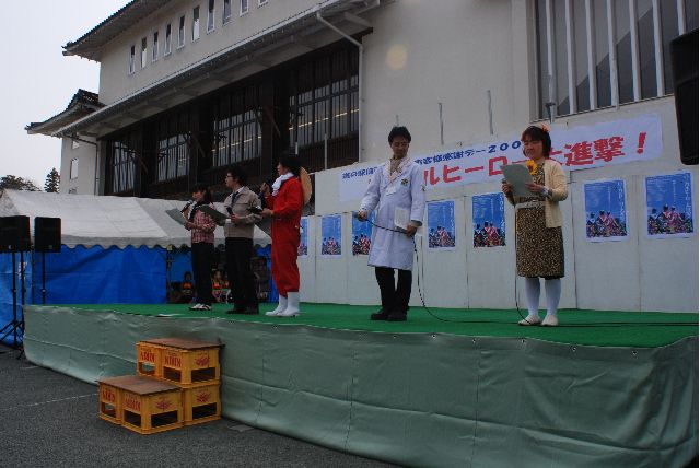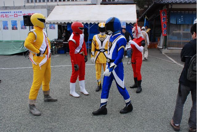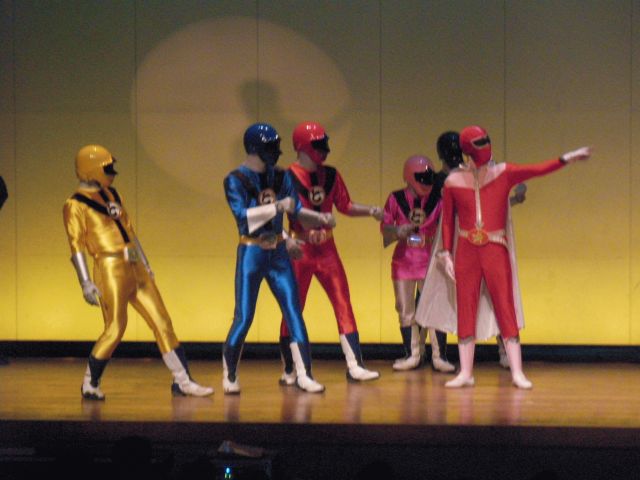 ドテレンジャーさんは5人、それにナレーター1名、司会のお姉さん1名、