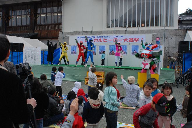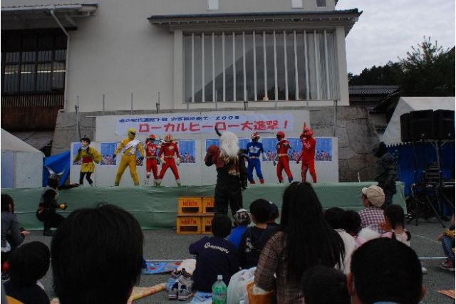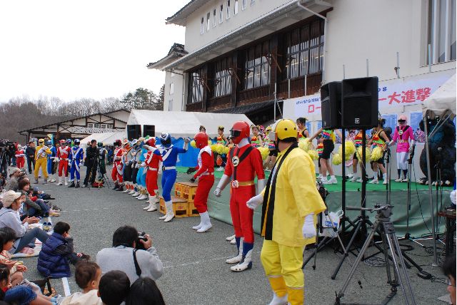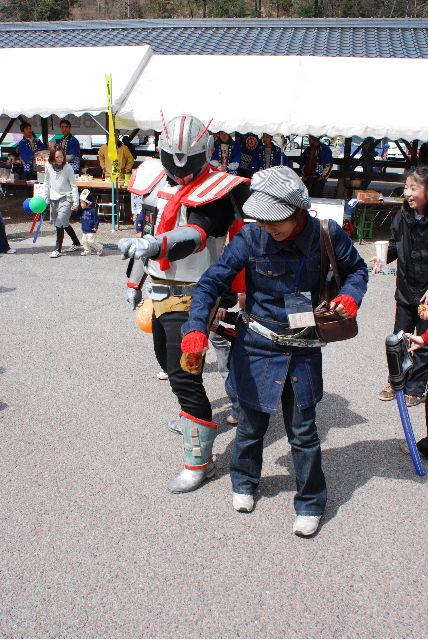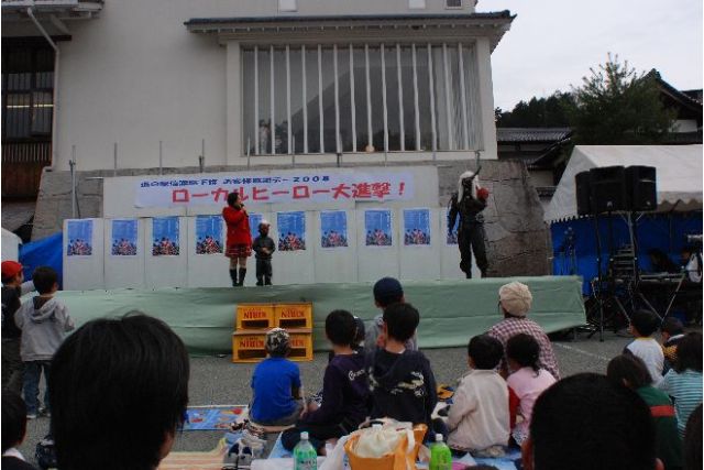 現地へ前日入り、主催者である下條村のローカルヒーロー、地域戦隊カッセイカマンの